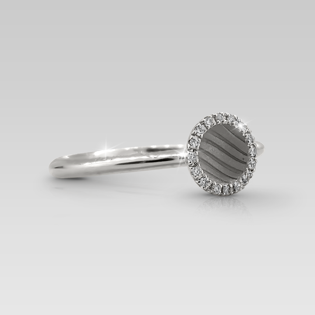 Anillo My Star realizado en oro 18k, color white ice, con brillantes naturales, 0.07 cts t.w., y un total de 1.90 gr. Talla 7. Annamaria Cammilli.