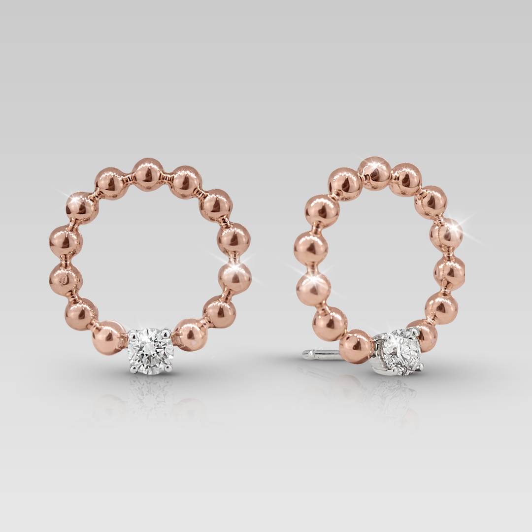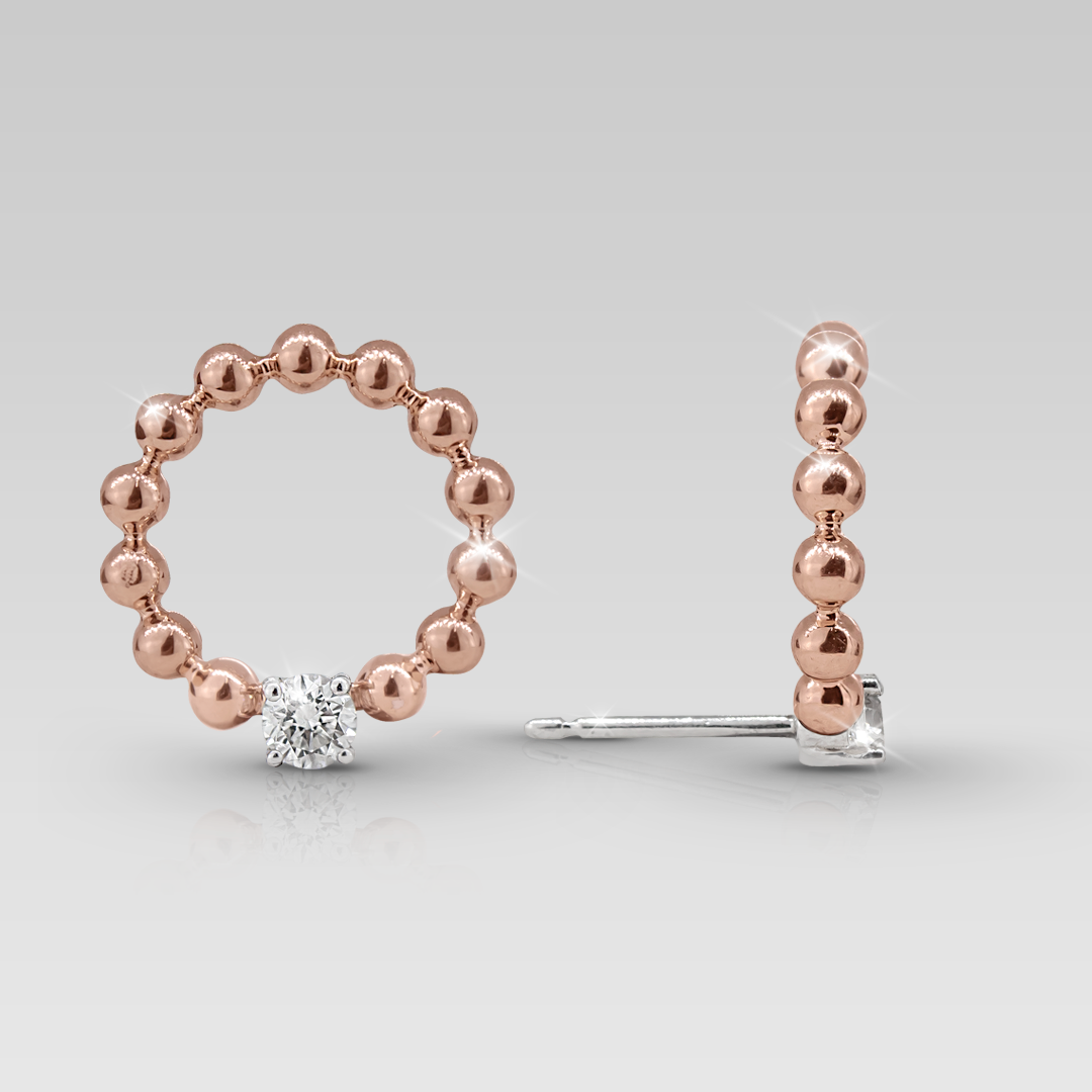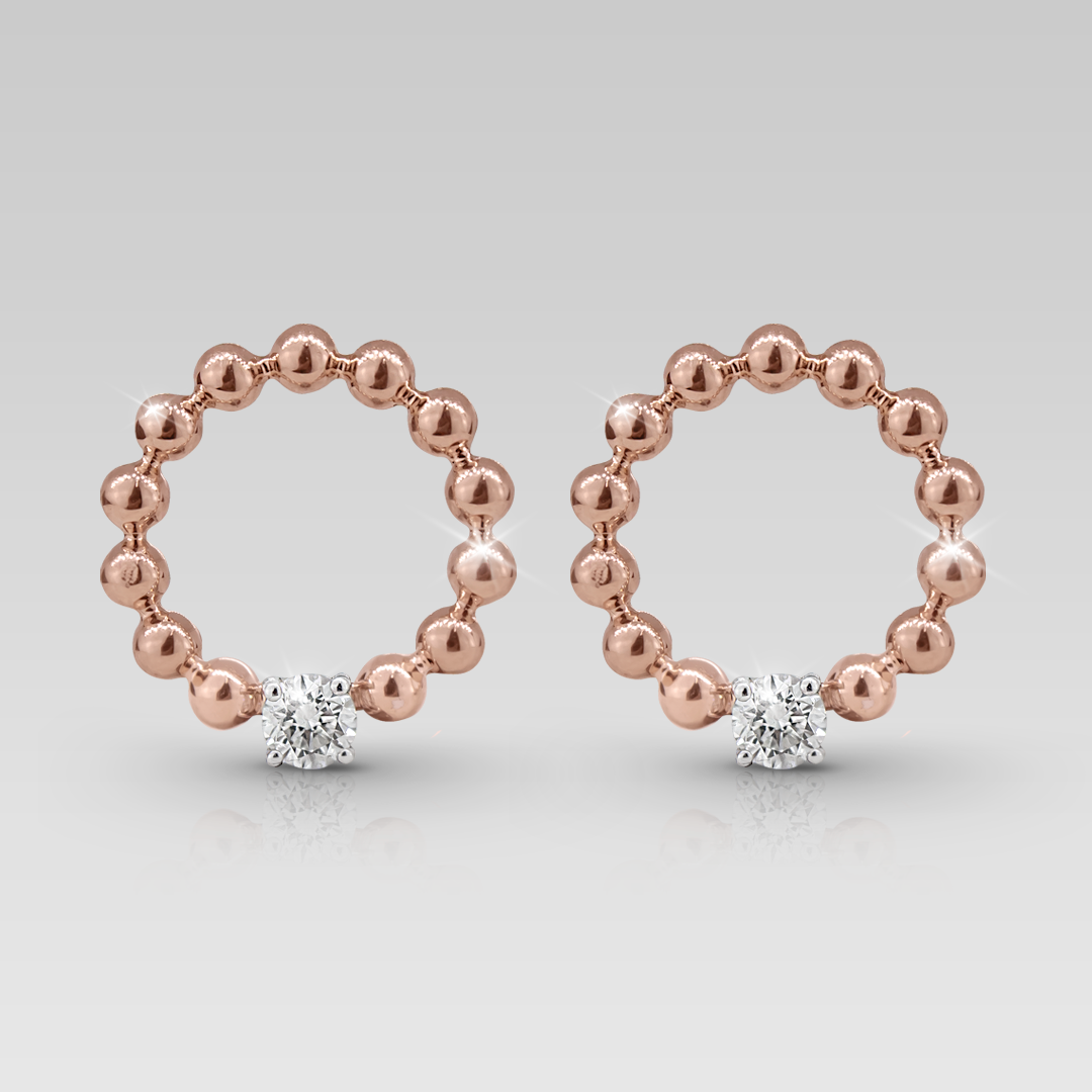 Zarcillos realizados en oro blanco y oro rosado 18K, con 2 brillantes naturales de 3.70 mm, calibrados de corte round, color G, claridad VSI. 0.42 cts T.W. Peso 6.80 gr.