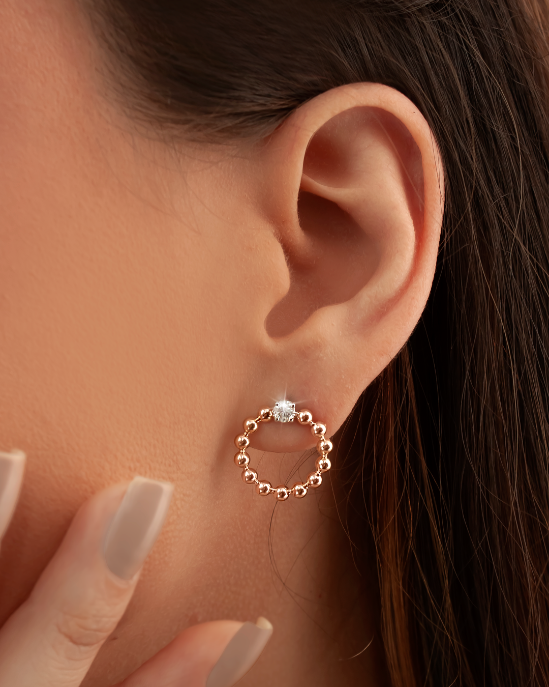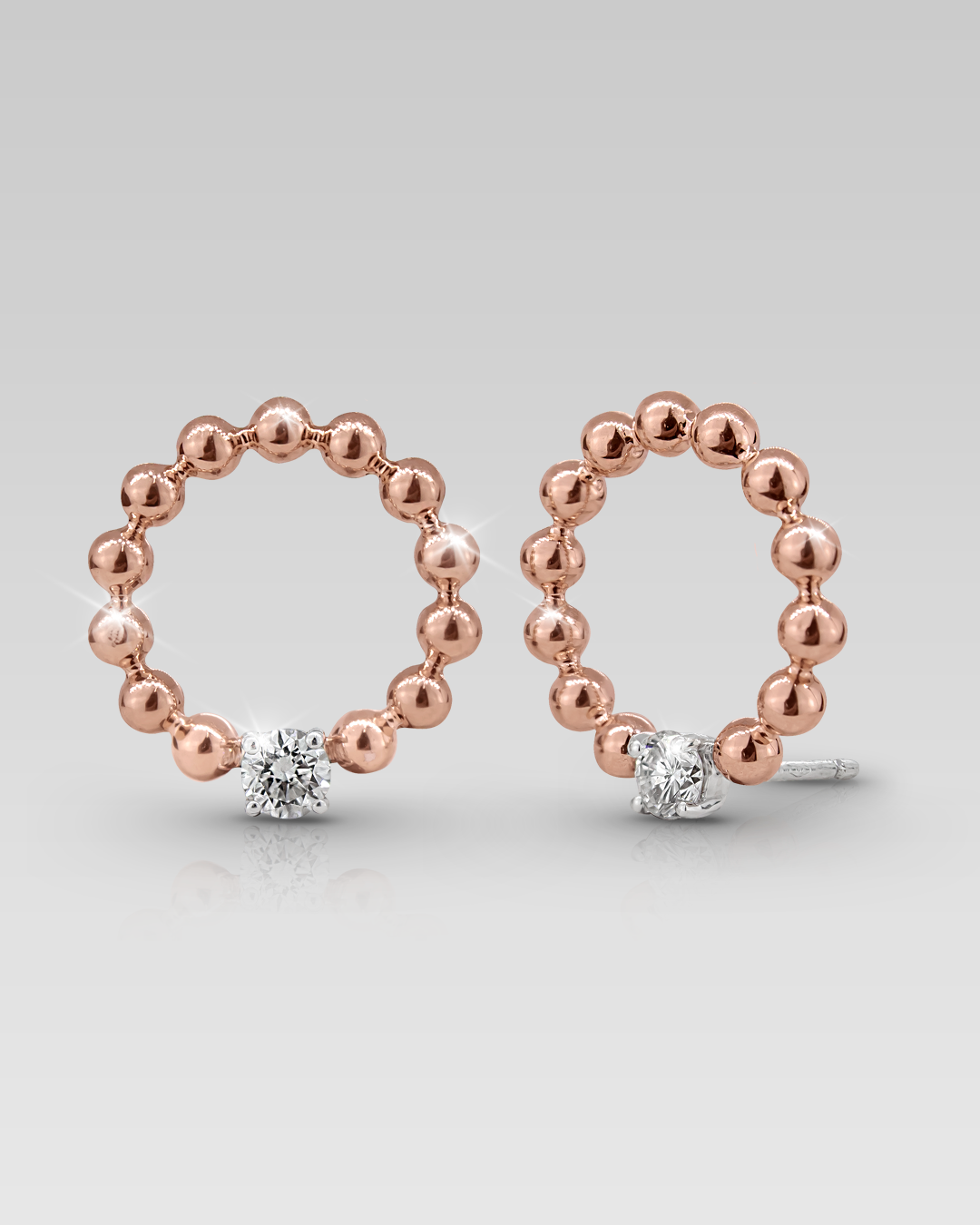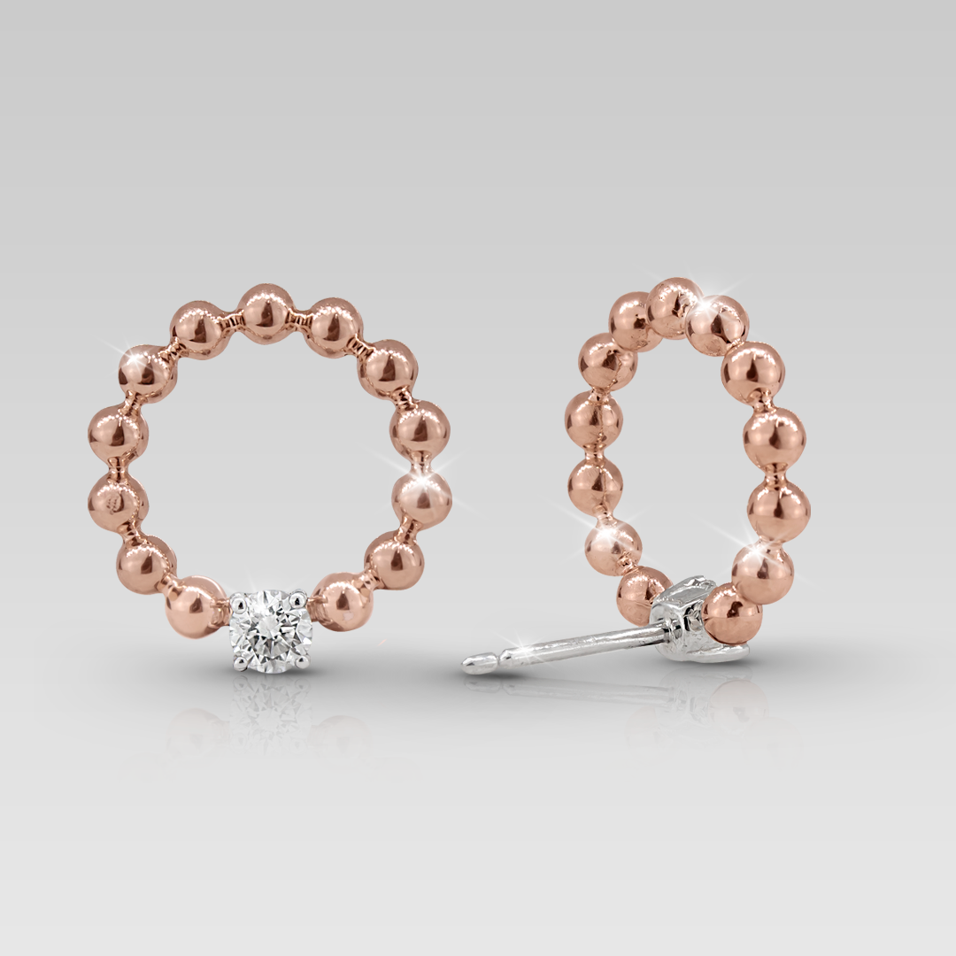 Zarcillos realizados en oro blanco y oro rosado 18K, con 2 brillantes naturales de 3.70 mm, calibrados de corte round, color G, claridad VSI. 0.42 cts T.W. Peso 6.80 gr.