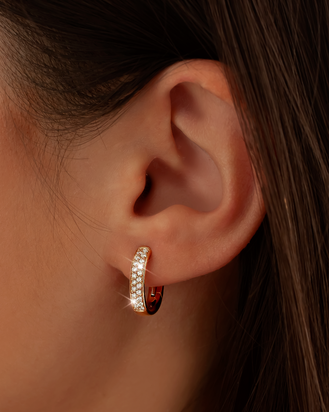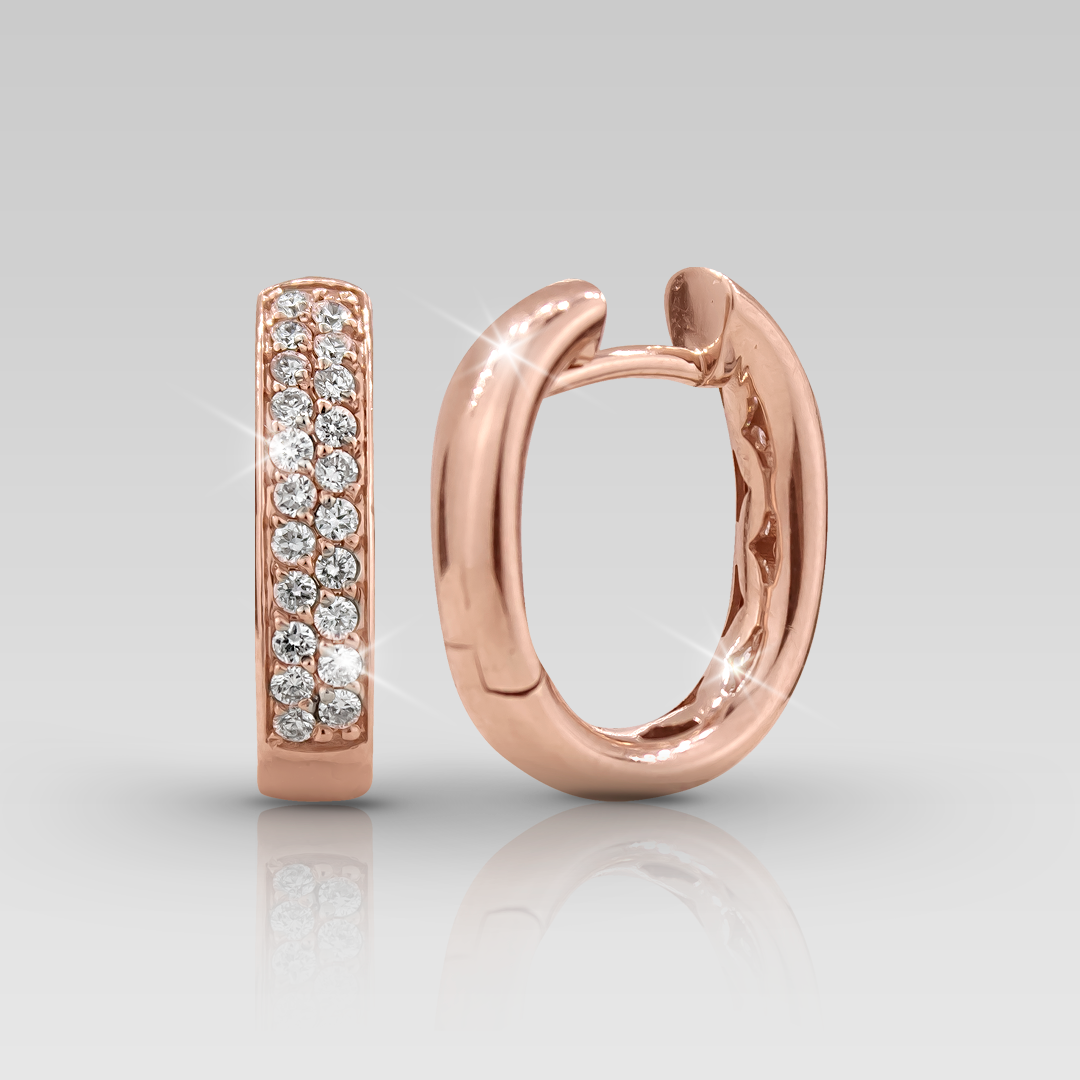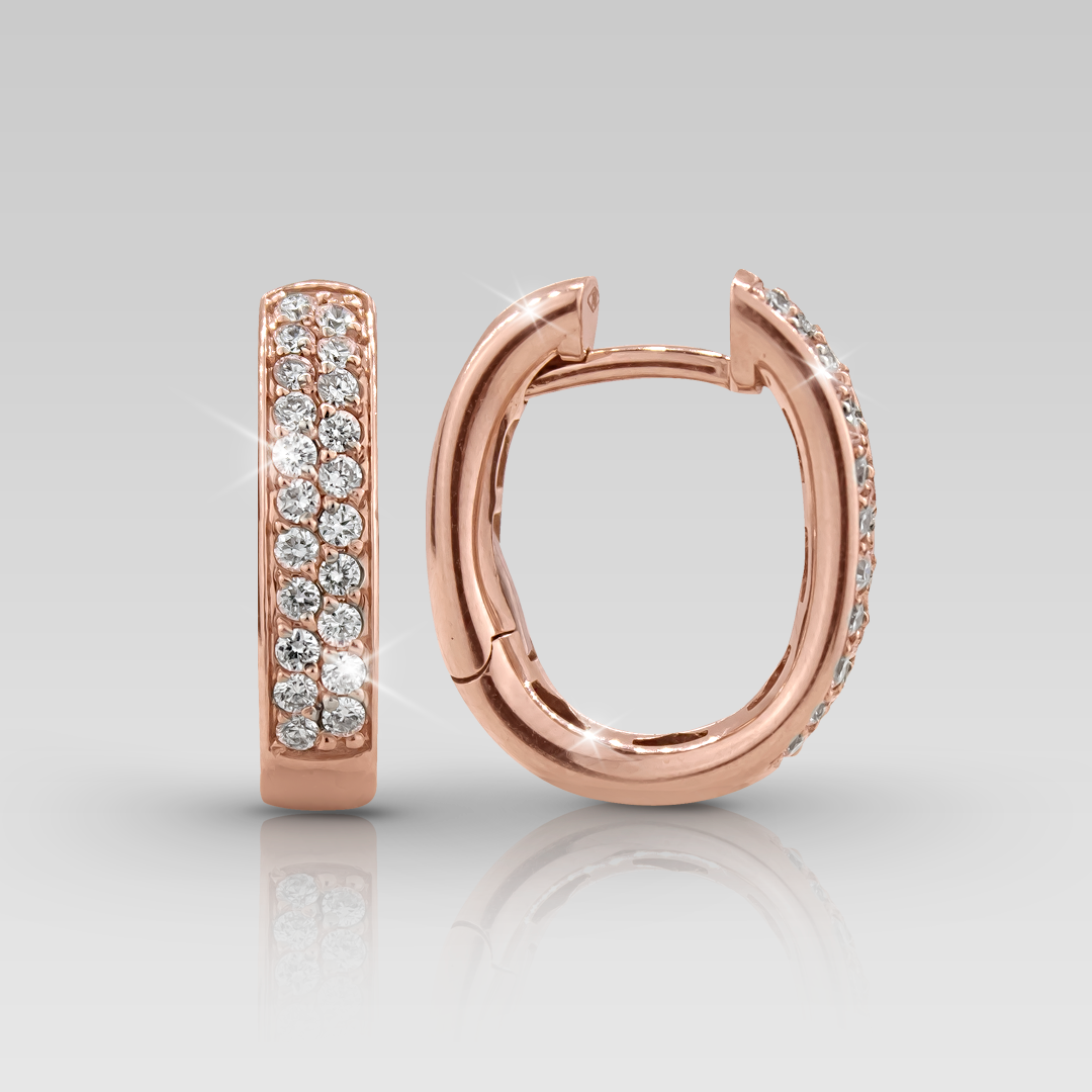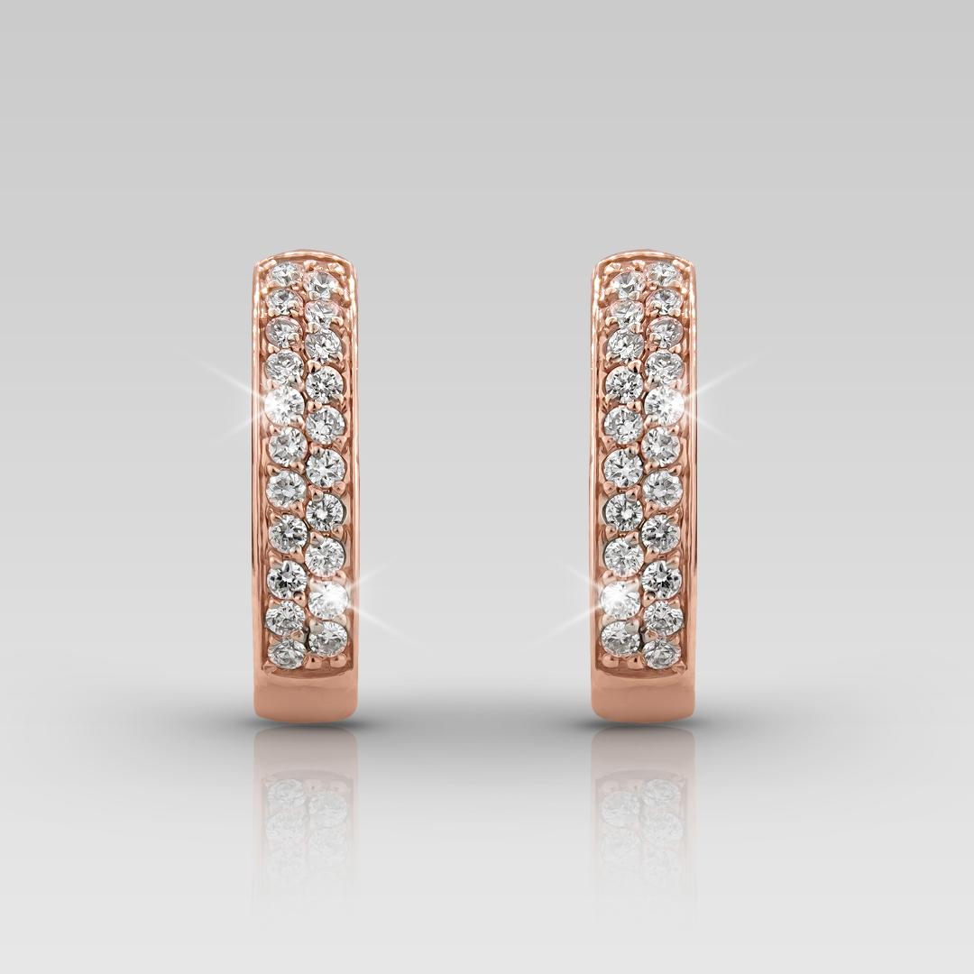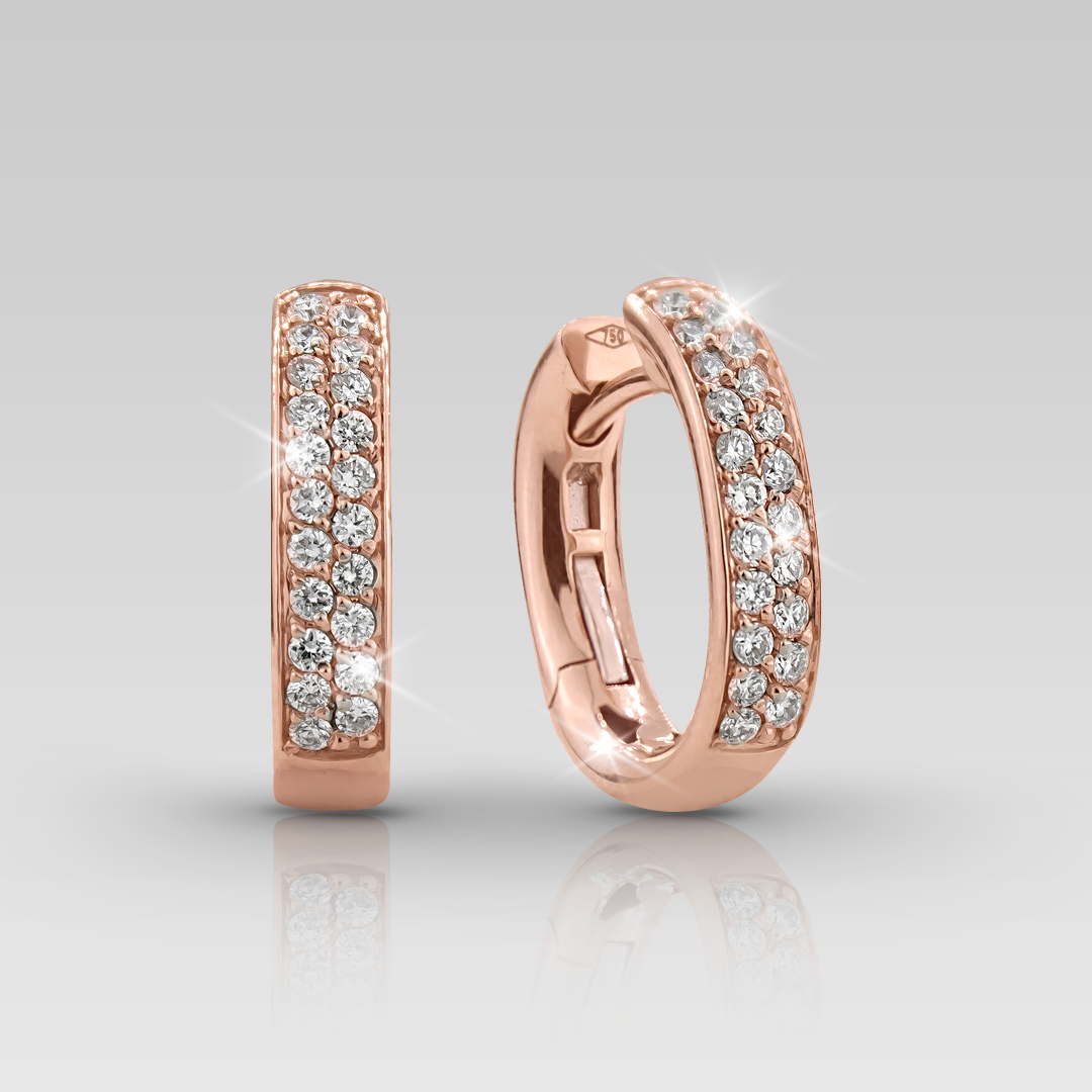 Zarcillos realizados en oro rosado 18K, con 44 brillantes naturales de 1.20 mm, calibrados de corte round, color G y claridad VS.