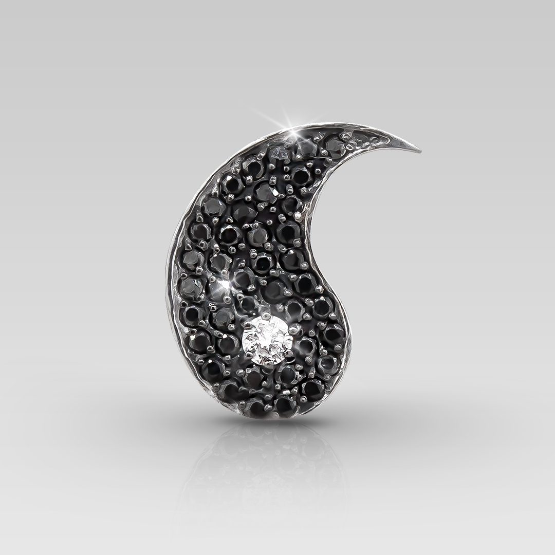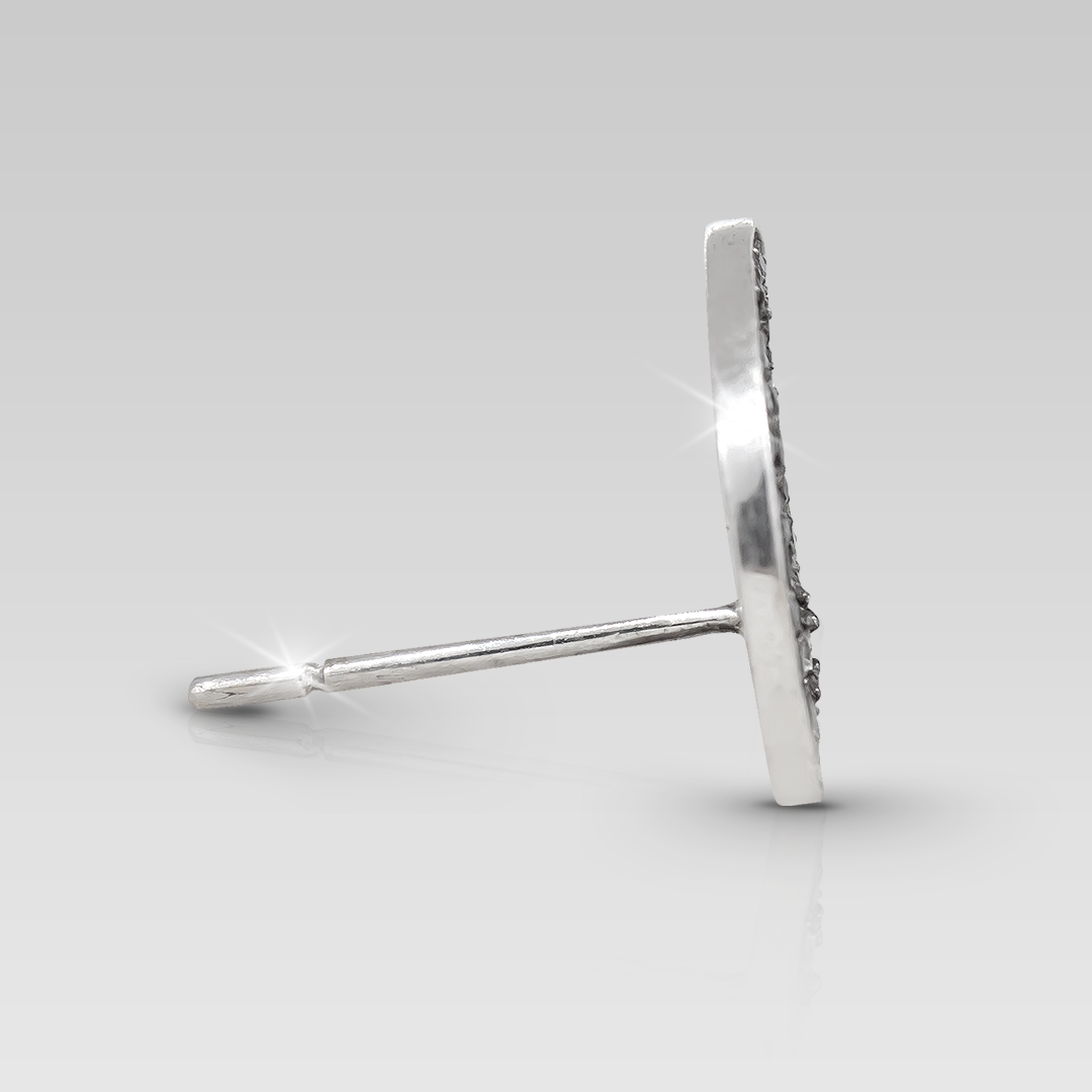 Zarcillos realizados en oro blanco 18K, con 84 brillantes naturales de distintos tamaños, calibrados de corte round, color G y claridad VVS. Y 42 brilantes de distintos tamaños, calibrados de corte round, color negro.