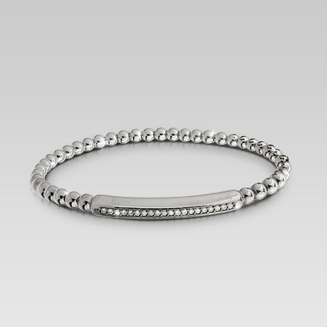 Pulsera en oro blanco 18k con 20 brillantes naturales calibrados de corte round de 1.30 mm, color F y claridad VS.