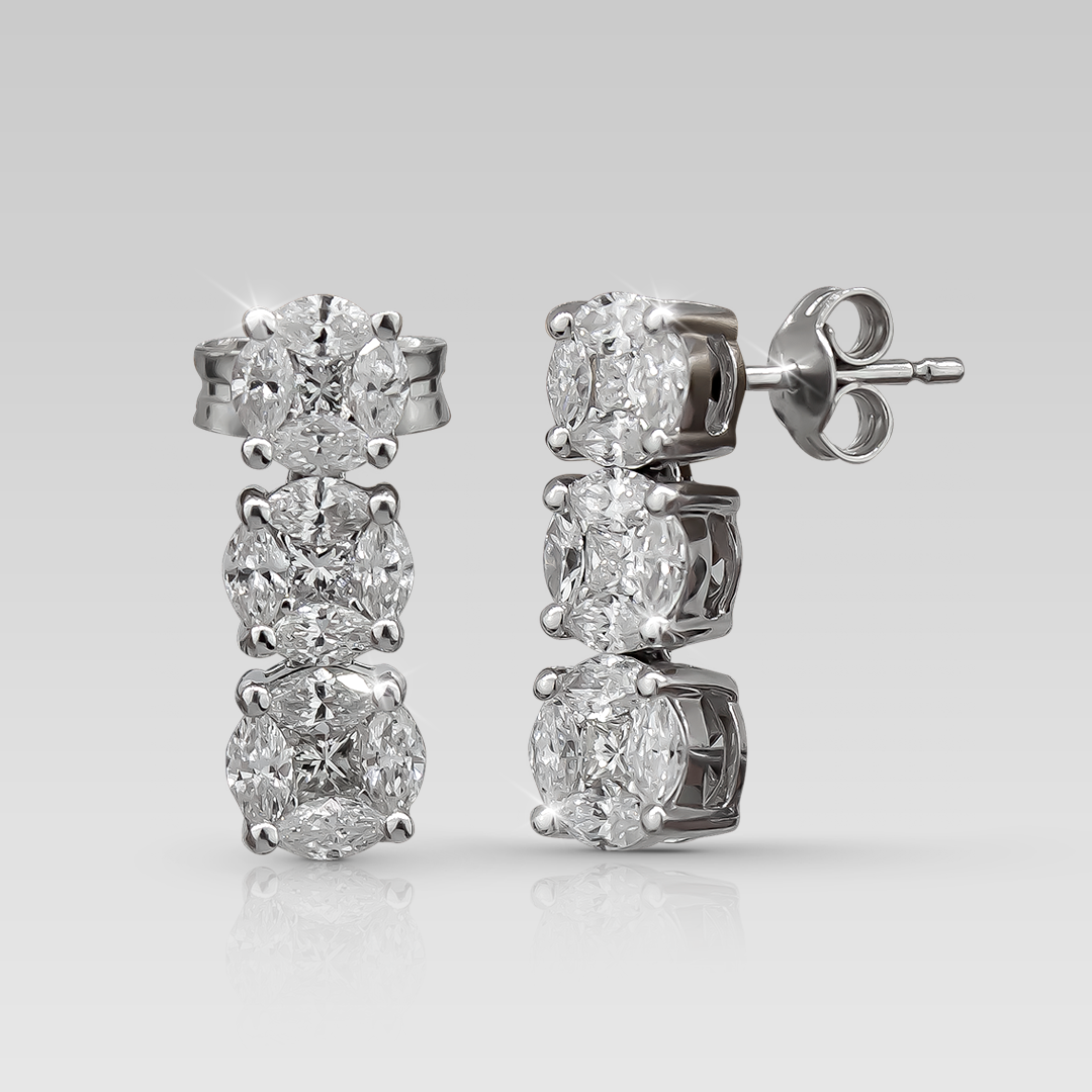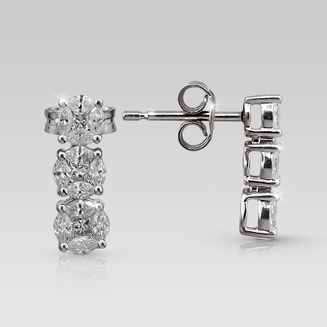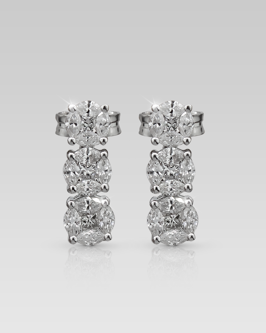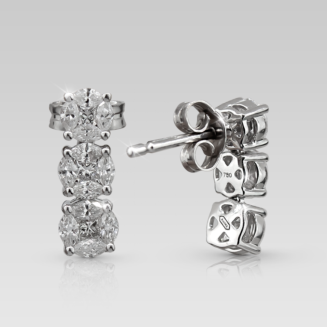 Zarcillos Trilogy realizados oro blanco 18k, con 0.66 carats debrillantes naturales.